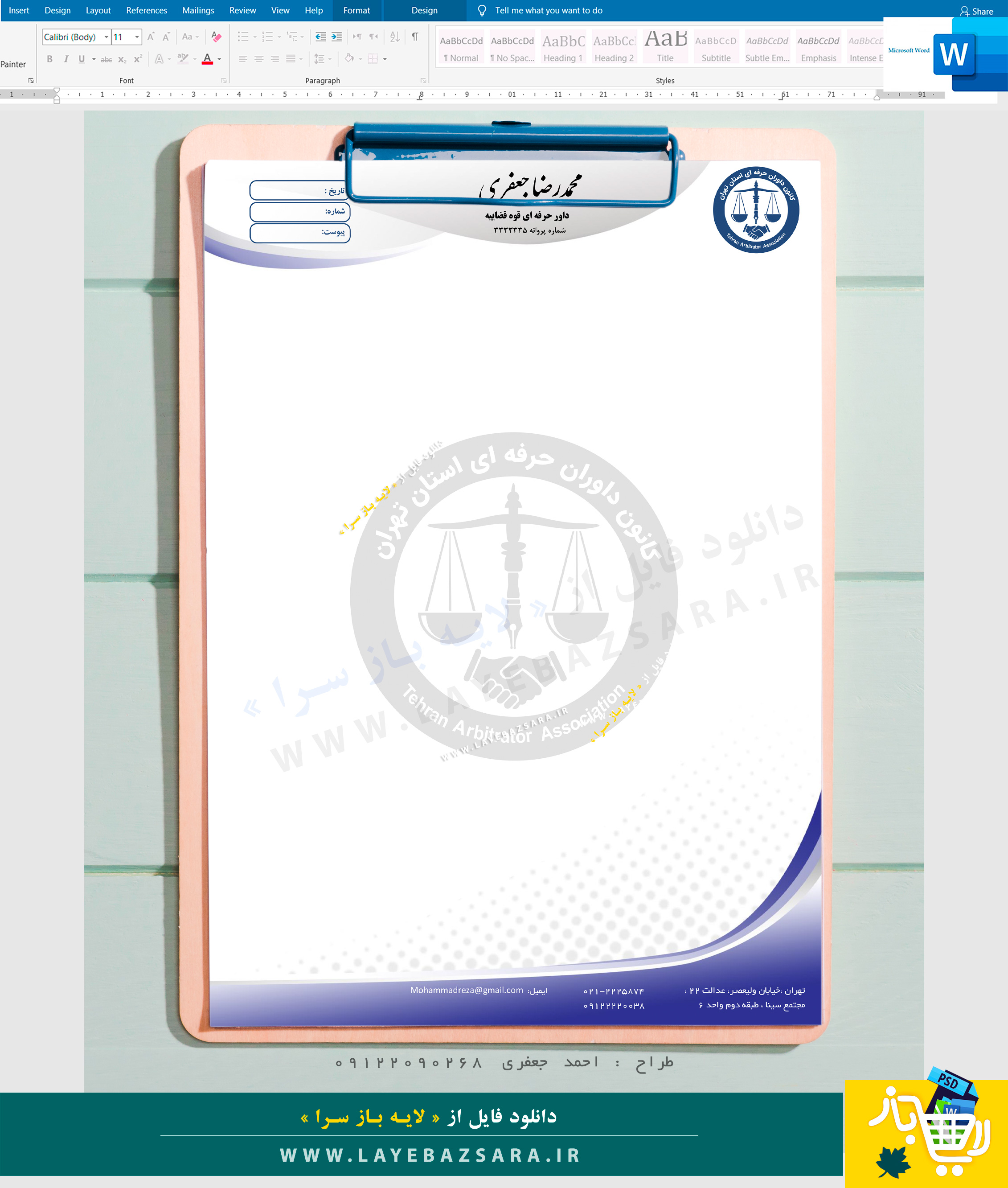 دانلود سربرگ کانون داوران حرفه ای قوه قضائیه در قالب ورد word کد 01